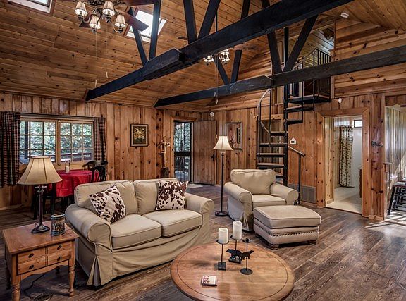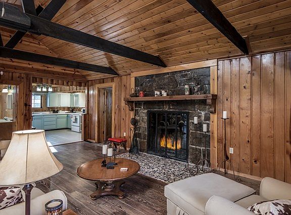 Log-sided home on large 3/4-acre lot is a true Upper Canyon retreat. 1620 sq ft with 3 BR, 2 bath, vintage pine walls and many improvements. Large partially-covered, elevated deck for morning coffee, evening meals and mountain views (incl. soft view of Sierra Blanca). Huge great room has open-beam cathedral ceiling, stone fireplace and restored original wood floors. Also new in 2015: evaporative septic system (no monthly sewer bill), HE gas furnace, gas HWH, bathroom fixtures, ceramic tile floors in both baths and kitchen, dishwasher, Pergo floor in MBR. New metal roof on master suite. Kitchen has water hookups for W/D. Sold semi-furnished.