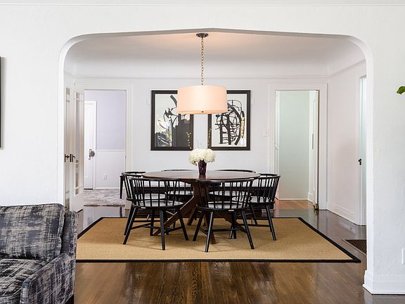 A sophisticated California Bungalow complete with vintage influences and finishes. This Windsor Village haven offers a well-appointed floor plan with a lovely light and bright living and dining room, as well as a pleasant sun room. Welcoming archways, great energy, and hardwood floors throughout. Completely charming living spaces, approximately 1,584 sqft with 3 bedrooms, including a stylish master suite. A proper cook's kitchen with stainless steel appliances and custom cabinetry with quaint subway tile countertops. The backyard encompasses a generous grassy yard and a brick patio, illuminated by beautiful market lights-perfect for entertaining and hosting guests. Property also has a generous basement that could be converted.