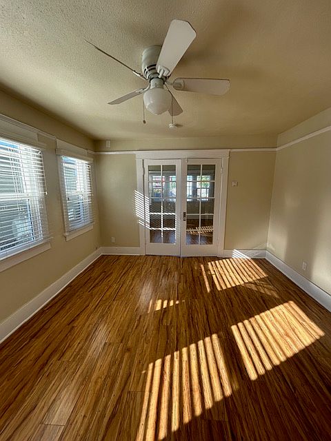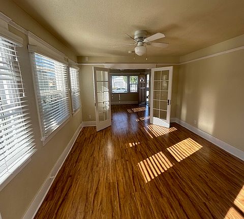 One bedroom, one bath downstairs unit. Fresh new paint with laminate flooring throughout unit. Laundry hookups in unit. One parking space included. No pets! Owner pays trash only.