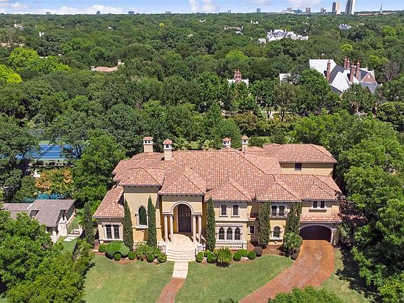 Exquisite custom home on nearly an acre lot in coveted Preston Hollow Estates. Enter through an expansive gated driveway, with mature trees & lush landscaping surrounding the property. This stunning home boasts large, elegant living spaces, perfect for entertaining both indoors & out. Beautiful chef's kitchen opens to family room with views of the outdoor space. Downstairs master suite, plus additional guest room; 4 guest rooms up. Highlights include formal living & dining, private study, wet bar, wine room, 2nd floor game room, media room, & approx 600-sf unfinished space. Backyard paradise includes loggia, outdoor grill & fireplace, & pool-spa. Property is complete with secured porte-cochere & 4-car garage.