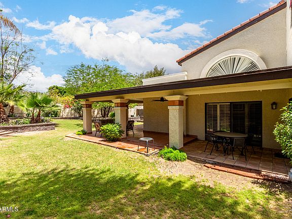 YOUR PRIVATE TROPICAL OASIS RETREAT!! **RARE HUGE** private Quarter-Acre back yard secluded from neighbors with towering palms and lush greenery. NOTHING like this anywhere else in Phoenix... Welcome to your brilliant private retreat in the heart of Gosnell's jewel, the stunning Pointe South Mountain community! You'll fall in LOVE before you even enter this beautiful home, nestled on one of The Pointe's quiet and friendly cul-de-sacs... Indulge in sought-after upscale living in the prestigious Spanish and Mediterranean-inspired Pointe South Mountain community. The visionary Gosnell architecture is immediately breathtaking as you walk in, and is renowned for its unique floor plan and appointments including high clerestory windows and soaring ceilings bringing light from all directions. The gorgeous plantation shutters give a richness to the natural light coming in everywhere... The bright, open kitchen boasts SS appliances, ample cabinetry, and lots of light. The Primary Suite has direct access to your expansive wrap-around patio overlooking your massive private tropical retreat yard for afternoons in calming, serene resort-like privacy.