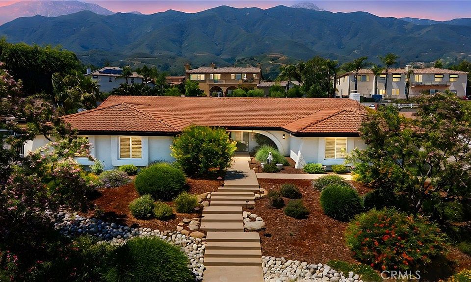 Nestled in the prestigious foothills of Alta Loma, this exquisite single-story Spanish estate offers luxurious living across 5 bedrooms & 3.5 bathrooms, blending timeless architectural charm with modern sophistication. Designed by renowned builder, David Gula, this Mediterranean hacienda showcases authentic Spanish details, including sweeping brick arches, wood beam ceilings, handcrafted tile work around arched fireplace, laundry room, and bar area, and a resort-style backyard with a sparkling pool surrounded by lush, custom landscaping, 2 covered patio areas, an outdoor shower, all on a sprawling half-acre lot. Designed for both grand entertaining and private relaxation, the property includes a large grass area, a spacious 3-car garage with premium cabinetry, RV parking, an abundance of guest street & driveway parking, and a seamless indoor-outdoor flow perfect for Southern California’s coveted lifestyle. With its expansive layout, soothing atriums, french doors, high-end finishes, and serene setting, this residence embodies the pinnacle of Spanish-inspired luxury in one of Rancho Cucamonga’s most desirable neighborhoods.