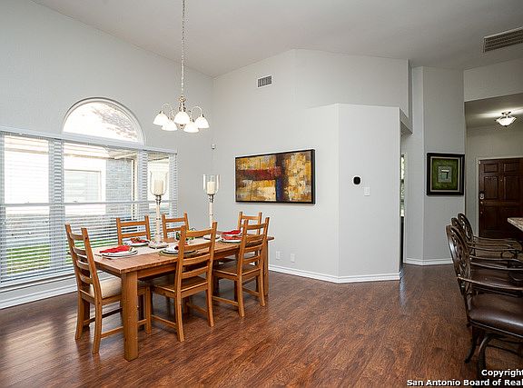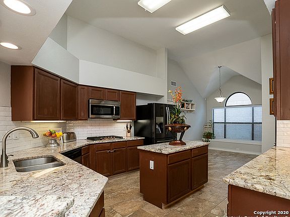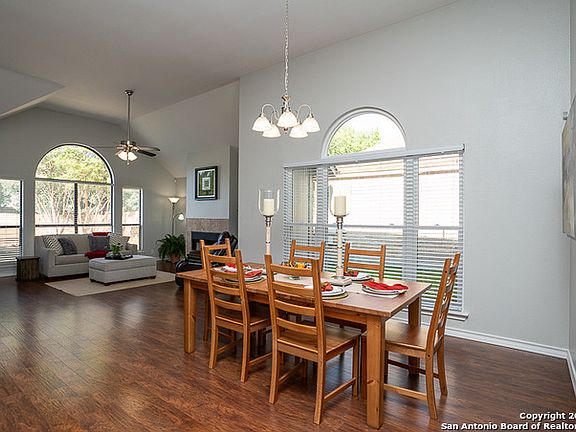 Come see this amazing single story home with great natural light and high ceiling that make it feel HUGE! This home backs to a greenbelt area in this gated community so feels quite and calm when inside, but you are close to all the action with 1604 and Bandera being just one light south of the neighborhood entrance! This home features new laminate and ceramic tile flooring throughout, new paint in the whole home, new updated Stainless steel appliances, updated granite counter tops in this bright island kitchen. Gas cooking, heat, and water heater keep the energy bills lower than normal. With two fireplaces in the home, one in the living room that provides a great focal point for an Art piece or a TV, and the second is a two sided in the Master Bed/Bathroom with updated tile on both sides you will always feel like a fire. The master bath features standing shower and the large garden tub, double vanity and a large walk-in closet. Both secondary bedrooms provide a great amount a space away from the master bedroom for kids and family to have their space to relax, study, or play. The back yard and front yard both have large mature trees to get plenty of shade when needed, however the back patio and yard provide plenty of room for a trampoline and seating for those outdoor parties! This home is a connected home with a Samsung Smart HUB, Smart Door Locks, Connected Thermostat, Multiple connected switches and plugs that all convey with the home so you have total control of your home from anywhere. This home is in Northside ISD and has highly rated schools from K-12th, and the neighbors here are extremely welcoming and will be available to connect and share their stories with you in this small community of homes. Go for a swim at the pool or play a game of tennis or basketball at the community park. Book your showings today!