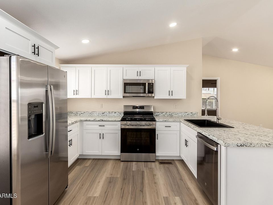 *6 Months Paid lot rent & Washer/Dryer!*Non Age Restricted*Come and experience this charming 3-bedroom mobile home, where vaulted ceilings, a neutral palette, recessed lighting, and wood-look flooring create an inviting ambiance. The spacious great room is perfect for relaxing or entertaining. Well-appointed kitchen boasts stainless steel appliances, white cabinetry, ample counter space, a pantry, and a peninsula with a breakfast bar. Unwind in the sizable main bedroom, featuring a walk-in closet and a private ensuite with dual sinks. Backyard is perfect for fun barbecues! Enjoy resort-style amenities, including a sparkling pool, soothing spa, fitness center, and more. Don't miss out on this incredible opportunity!