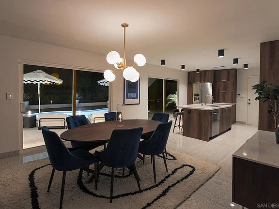 Living the California dream is what this home is all about. This mid-century modern gem is absolutely stunning, set on a palm tree–lined street that perfectly frames endless summer poolside gatherings and the quintessential indoor-outdoor SoCal lifestyle. Step through the front door into a beautifully reimagined interior where modern design meets retro charm. The kitchen was fully gutted and redesigned by a high-end kitchen designer, featuring custom cabinetry, premium surfaces, and top-tier appliances. The flow from the kitchen to the outdoor entertaining area creates the perfect setting for hosting friends and family. The pool deck was recently resurfaced with natural stone tile, offering a resort-like feel right at home. Major upgrades have already been taken care of for you, including a new roof, energy-efficient dual-pane windows, a relined and descaled sewer line, and a new tankless water heater that provides endless hot water. With three bedrooms, two bathrooms, 1,716 square feet of living space, and a two-car garage, this home blends timeless style with modern comfort. Its easy indoor-outdoor connection, classic mid-century architecture, and thoughtful upgrades make it a rare find that truly captures the spirit of Southern California living. Located in the heart of La Mesa, it’s the perfect place to relax, entertain, and make lasting memories.