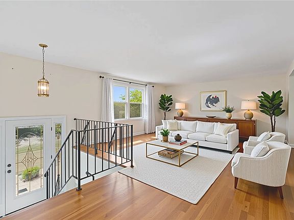 Beautifully maintained, sizeable all brick split entry wonderfully positioned minutes from North Park. A covered front patio and leaded glass door welcomes you. Lovely hardwood floors exposed in the living and dining areas and hallway with additional hardwood under the bedroom carpets. A well-lit, beautiful quartz kitchen is complemented by a skylight and accentuated by a useful peninsula, under cabinet lighting and built-in pantry. The newly installed sliding glass door from the dining space to the rear exterior of this home and property promotes easy access to the covered back patio and level, fenced-in yard that offers a shed for additional storage. The primary ensuite includes a full 3-piece stand-up shower bathroom while a second full hallway bath features a tub. Vast floor-to-ceiling brick gas fireplace highlighted by a raised hearth warms this immense space when needed. A wet bar, powder room and laundry round off the lower level. Note: interior photos digitally staged.