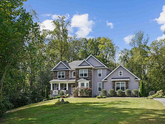Tucked away at the end of a private cul-de-sac, this stately 2-story home offers over 3,900 sq. ft. of total finished living space on a 3.2-acre wooded lot. As you approach this home, you are greeted by a charming front porch with stone columns and white picket railing. As you step inside, you’ll find features that include a formal light & airy dining room, home office or library, and a spacious family room with an elegant stone fireplace. A "chef's dream" kitchen includes granite countertops, stainless steel appliances, a large island with room for meal prep and seating, a walk-in pantry, and plenty of cabinet and counter space. Step out from the breakfast nook area to a covered and screened deck overlooking the backyard. Now a garden with raised beds with trellises, you can easily convert back to bare land and build your new pool or a woodland fire pit. Off the kitchen you’ll find a mudroom with built-in cabinets and a utility sink, half bath, and access to the 3-car garage. Venture upstairs and fall in love with the primary suite that features two nice walk-in closets, a sitting/reading nook, and a beautiful ensuite bathroom with a soaking tub, walk-in shower, and dual vanities. Two additional bedrooms share a hall full bath with a dual sink vanity and tiled shower/tub combo. Having the laundry room on the second floor provides a small but treasured convenience. The fully finished basement offers many possibilities to create your own memories. A recreation/living room, a theater room to enjoy countless movie nights or the” big game”, gym that can house multiple pieces of equipment, if need be, full bath with walk-in shower, and exit to a private hardscaped patio for nights by the grill. You’ll feel relief in knowing there’s a whole home fire suppression system, underground power lines and smooth-running fiber optic internet. Enjoy this peaceful retreat and privacy of the wooded setting while remaining just a short drive to La Plata, Charlotte Hall, and Dahlgren.