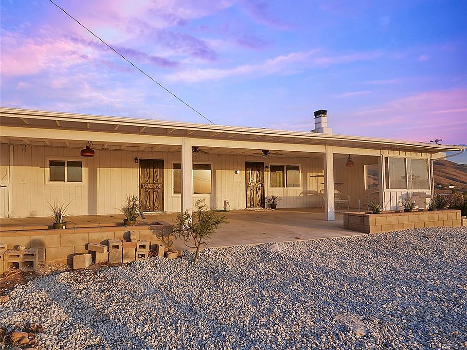 Price drop $46k total on this gorgeous home sitting on 5 acres! The home has the best views of the Mariana Mountains and the entire high desert! If you're looking for horse property in Apple Valley, here it is.. Gorgeous remodeled 3 bedroom 2.5 bath home sitting on top of a mountain! 3 bedroom 2.5 bath, detached 2 car garage and large shed for extra storage or maybe an office. New windows, new flooring, baseboards, ceiling fans with lights, recess lighting and faux wood beams gives it that extra nice touch. The upgrades in the home gives it a modern day feel, but this 1954 home still has some nostalgic touches. Completely covered patio with million dollar view has new lights/fans outside, 2 dutch doors are an added bonus as well as several pocket doors. The oversized detached 2 car garage is large enough to convert to an ADU, plus a oversized shed is great for a small office/she shed/man cave and a wood stove for cold nights. Lots of extra touches were done to this home to make it move in ready for the buyer.