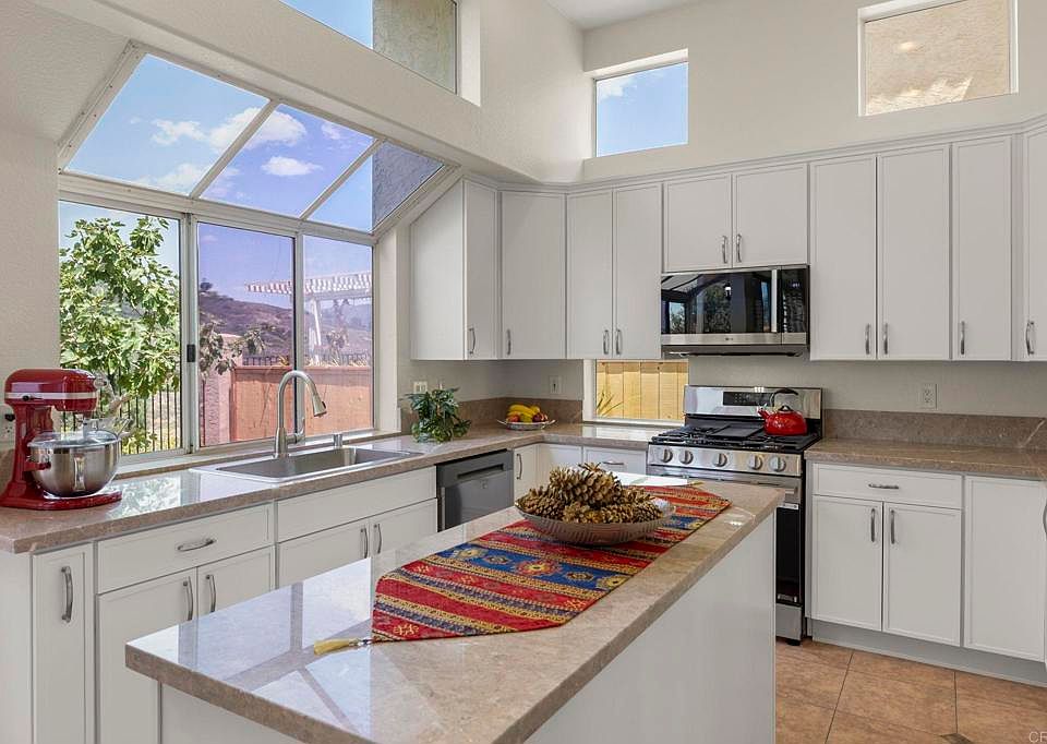 View, View - Turn-Key 5-Bedroom Home with Stunning Views in WoodCrest Hills! Welcome to this beautifully updated 5-bedroom, 3-bath home boasting 2,725 sq. ft. in the highly desirable community of Woodcrest Hills. Enjoy peaceful hills and sunset views from your brand-new balcony off the spacious master suite, with two walk-in closets. One bedroom and a full bath are conveniently located downstairs — ideal for guests or multigenerational living. The fully renovated kitchen features elegant Italian marble countertops, brand new cabinets, walk in pantry, and stainless steel appliances, with built-in air fryer function stove. The interior of the home has been freshly painted and includes new skylights that bring in an abundance of natural light. Additional highlights include brand new fencing around the property, a generous backyard perfect for entertaining, and a freshly painted 3-car garage with a sleek epoxy-coated floor. This family-friendly neighborhood includes a community pool, low HOA fee, and tennis courts, and is located less than a mile from shopping centers, restaurants, and theaters, with easy access to both I-15 and 56 freeways. “Seller offering credit toward buyer’s interest rate buy-down or closing costs with acceptable offer-ask for details.” This move-in ready home is a must-see and won’t last long!
