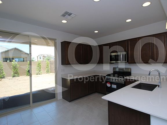 Available Now! 1,397 SQ FT! 3 bedroom, 2 bath home in Western Enclave! 2023 build with modern upgrades & smart home features throughout. Desirable single story floor plan with welcoming great room! Stunning eat-in kitchen with included appliances, & expansive center island/breakfast bar. Great room living/dining with sliding door patio access! Perfect entertainment space. Neutral interior with tile flooring in all the right places! This home offers 3 nicely sized bedrooms. Primary suite with full bath + walk-in closet! Laundry room with included washer/dryer. Enjoy a low up keep backyard with covered patio! 2 car garage. Western Enclave offers gated entry, playgrounds, & biking/walking trails!