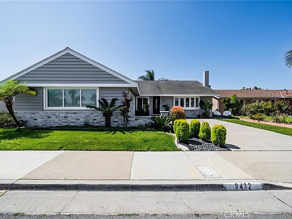 Welcome to 9432 Waterfront Drive in the heart of Huntington Beach, where comfort meets coastal charm. This spacious single-level home has been freshly painted and meticulously maintained, boasting exceptional curb appeal and beautifully manicured landscaping that invites you in from the moment you arrive. Inside, you'll find soaring vaulted ceilings and a bright, airy living room featuring a picturesque bay window, built-in shelving, and a smooth stucco fireplace that adds warmth and character. The open-concept kitchen flows seamlessly into the family room, creating the perfect space for both everyday living and entertaining—all while enjoying peaceful views of the private backyard oasis. This thoughtfully designed home offers three generously sized bedrooms plus a versatile office/den just off the living room—ideal as a playroom, home office, or fitness space. The spacious primary suite is a true retreat, complete with a sliding glass door that opens directly to the backyard and an en-suite bathroom featuring dual sinks. Step outside into your own private sanctuary—a tranquil backyard with mature landscaping and flourishing fruit trees, perfect for relaxing, entertaining, or enjoying the coastal breeze. Additional highlights include a spacious attached two-car garage with plenty of storage, providing both convenience and functionality. Located just about a mile from the beach and close to top-rated schools, shopping, dining, and entertainment, this move-in ready gem offers the best of Huntington Beach living—all on one beautifully designed level. Don’t miss your chance to call this exceptional property home!