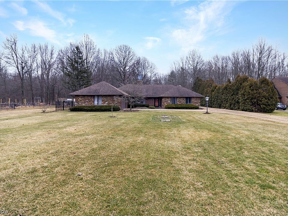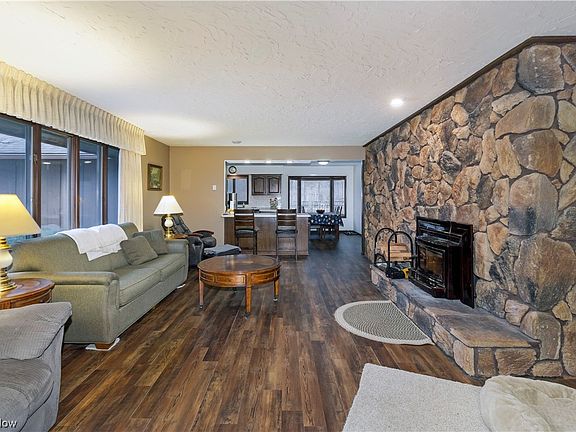 Welcome Home! This is a special property. Absolute one floor living. Spacious with an open floor. Cozy great room with wood burning fireplace (insert). Open to large eat in kitchen updated with loads of newly stained cabinets, new counter tops, backsplash and sink. Stove (2022), refrigerator and dishwasher stay. Convenient half bath and laundry room off kitchen. Washer (2021) and dryer stay. Hot water tank replaced in 2020. Living room with big windows for loads of natural light and picturesque view of back yard. Dining room currently being used as an office. Sunroom to enjoy coffee or seasonal nights. Spacious master bedroom with attached master bath and wall of closets. Three other bedrooms share hall bath. Extensive attic space-access in hallway and garage. Painted in neutral colors. Almost all of the flooring recently replaced. Bathrooms have been updated. This house is perfectly placed on over 2 acres. Large front yard, set far back from the street. There is extensive landscaping, including perennials, that unfortunately can't be seen this time of year. There is a fenced in section in backyard that is perfect for pets and small children. Then past the fence is a large pond surrounded by trees for privacy. The outbuilding is a dream! 2 car unfinished section with a garage door in front and back. There is a third car or finished section that is perfect for an office or man-cave. Updated electrical, insulation, drywall, flooring, lights and garage door. Don't miss out!