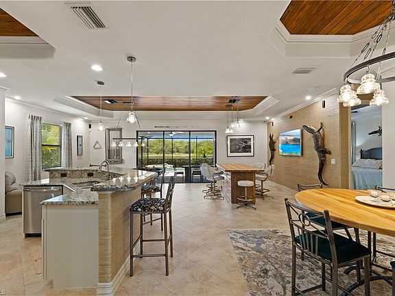 Here's your opportunity to own an Executive home situated perfectly in the subdivision of Ponte Rialto! With this 'Victoria' floor plan you have 2 beds, a den (OR 3rd Bedroom), 2 and a half baths, great room design with a spacious kitchen, right on your own tropical preserve lot. Inside you have a repainted home with granite countertops, a stainless appliance package with stand alone cooktop, wall oven/microwave combo, crown moulding, tile on the diagonal, and carpet in the bedrooms. Unique additions include solid core doors, guest bath upgraded with knee wall and glass enclosure, wood in tray ceilings, custom indoor bar that doubles as a dining area, feature walls accented with Arrowroot grasscloth wallpaper and updated lighting fixtures. Step on to your screened in lanai with the added wood tray ceiling and enjoy the view or just cook your heart out in your summer kitchen! Community amenities include a resort style pool, tennis courts, fitness center, spa, bocce, pickleball and more. Homes like this don't come across often! Make an offer with or without furniture. This is one of only 14 Non golf Executive homes in Treviso! Don't let this one pass you by.