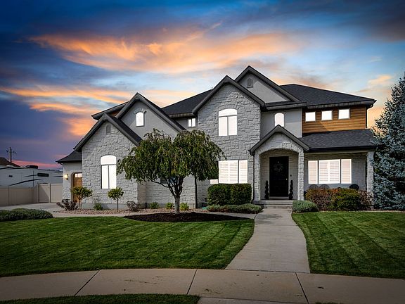 Stunning luxury home tucked away on a quiet cul-de-sac in the highly coveted city of Highland. The kitchen boasts sleek white cabinetry, quartz countertops, abundant storage, and an oversized breakfast bar perfect for casual dining or entertaining. The open-concept floor plan flows seamlessly into the light-filled great room featuring soaring two-story ceilings, expansive windows, and a cozy fireplace. Additional main-level highlights include a formal living room and a spacious private office. The primary suite offers vaulted ceilings, abundant natural light, and a spa-like ensuite with dual sinks, a separate tub and shower, and a generous walk-in closet. The fully finished basement adds two bedrooms, a full bathroom, a large family room, and cold storage. Upgrades include two new 50-gallon water heaters, a water softener, and regularly serviced furnace and AC units. The oversized three-car finished garage features epoxy flooring and built-in storage. Outside, the remodeled backyard creates an ideal space for both entertaining and relaxation. Perfectly situated near American Fork and Lehi shopping centers, Costco, Outlets at Traverse Mountain, and Silicon Slopes, with quick access to Alpine, Cedar Hills, and American Fork Canyon-this home combines luxury living with an unbeatable North Utah County location. Contact listing agent for seller's financing terms. Measurements provided as a courtesy only, buyer to verify all info.