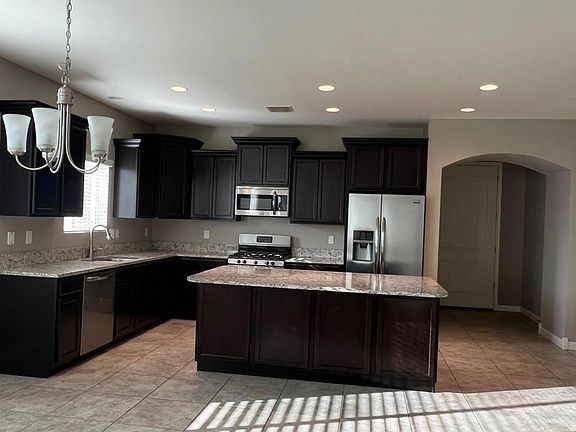 This beautiful 3 bed, 2 bath home in Copper Cove! Displaying a 2-car garage, cozy front porch, and a charming curb appeal highlighted by a stone-accented facade & lovely front yard. Enter to find a welcoming great room, neutral paint, tons of natural light, carpet & tile floors t/out, and sliding doors to the back. The kitchen offers SS appliances, granite counters, a pantry, recessed lighting, staggered cabinets w/crown molding, and an island w/breakfast bar. Double-door main bedroom has a walk-in closet & an en-suite w/dual vanities. Good-sized den can be an office or playroom. Enjoy the amazing backyard with a covered patio, artificial turf, and pavers for a perfect outdoor living space! This gem is sits on a corner lot of a cul-de-sac adjacent to a common area! Ready to moving in