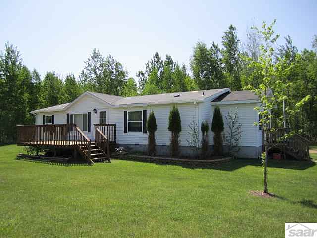 Lovely Country Living on a Wooded 10 acres! Sitting right between Highway 2 and Highway 53 in Poplar, this is a convenient spot to be. This newer home has many notable features: master bedroom with attached master bath featuring a whirlpool under a skylight; a large, bright family room with a sliding door out to a patio; main floor laundry, large front entry room, an open kitchen with carefree flow and a cozy living room. Beautiful, large deck off the front door too!