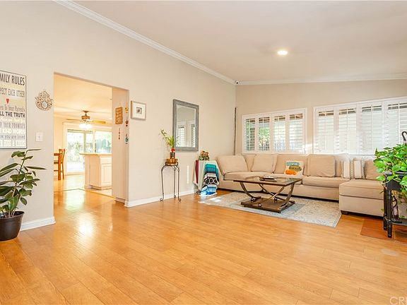 This absolutely gorgeous home is nestled on a picturesque tree-lined street in one of the Chatsworth most sought after west of Topanga Canyon Boulevard neighborhood, and as soon as you lay your eyes on it you'll immediately recognize the true pride of ownership. Here are just a few of its many other features. Lush landscaping and mature shade trees enhance its eye-catching curb appeal the custom red front door swings open toy flowing 1846 ft.² open concept floor plan that is in "MOVE IN CONDITION" with a complementary paint scheme, recessed lighting, hardwood flooring and rounded wall corner. The living room is Bathed in natural light from a myriad window and is enhanced further by its vaulted ceiling with elegant crown molding, plantation shutter and cozy wood-burning fireplace. The family's cook is going to truly appreciate the kitchen's abundant custom cabinets, custom travertine counter and large breakfast bar. The combination dining/family room flows seamlessly with the kitchen and with a ceiling fan and direct patio access you'll find it very easy to serve and entertain your guest simultaneously. All five bedrooms have a lighted ceiling fans the Master suite also has a large walk-in closet beautifully appointed bathroom and direct backyard access. A total of three bathrooms function located laundry room with ample storage. Energy efficient dual payne windows will help your utility bills low and the interior very quiet. Central heat and air for year-round comfort.