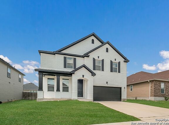 Step into this stunningly remodeled home that combines modern style with spacious living. Boasting one of the largest floor plans in the neighborhood, this home features a fresh 2025-inspired design, no carpet throughout, and stylish upgrades in all three bathrooms. The kitchen stands out with white cabinets, granite countertops, and sleek black hardware. Enjoy spacious bedrooms with ceiling fans, a huge primary suite with dual closets, and a large game room ready for fun. Additional highlights include a designer accent wall in the office, upgraded light fixtures, a covered patio, and front porch. Conveniently located near top-rated schools, dining, shopping, Loop 1604, and Randolph AFB-this home is completely move-in ready!