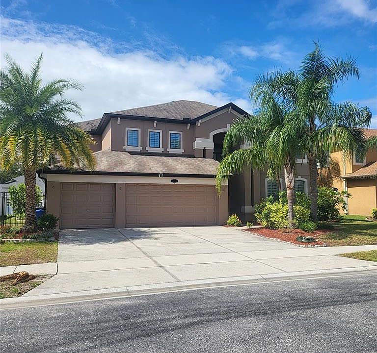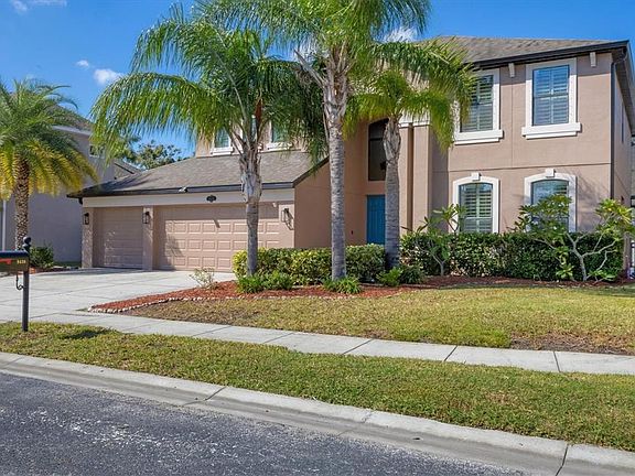 One or more photo(s) has been virtually staged. Go Big AND Go Home! With over 3400sf of living space (5000sf total), this beautiful two-story masterpiece situated in a centrally located, small GATED COMMUNITY is ready for a new family! The SPACIOUS FLOOR PLAN offers FORMAL LIVING/DINING, family room, eat-in kitchen, 5 bedrooms, 3 full bathrooms, a large BONUS Room & a 3-car garage. Even the OUTDOOR OASIS is OVERSIZED and is contained within a BRAND NEW (11/24) 2-STORY SCREENED ENCLOSURE that also covers the upstairs deck off the Primary Bedroom Suite/office. Centered in the recently EXTENDED STONE PAVER LANAI is the inviting HEATED, SALTWATER POOL (heat pump 04/25 + WIFI controller) that boasts a SUN LEDGE with shade umbrella & serene WATERFALL ROCK FEATURE. You're sure to enjoy the OUTDOOR KITCHEN with mini fridge, propane grill, stainless steel sink & a big Green Egg too! There's even EXTRA SPACE to set up a game of cornhole, chaise loungers, a patio table & chairs etc! A COVERED OUTDOOR LIVING AREA w/ WALL MOUNTED TV completes this outdoor paradise! For added safety, a METAL FENCE surrounds the majority of the backyard and joins the neighbor's vinyl privacy fence for a FULLY FENCED BACKYARD. The entire EXTERIOR has been FRESHLY PAINTED (10/25) & has NEW COACH LIGHTING. DOUBLE FRONT DOORS, in a tropical shade of blue, welcome you inside this beautiful home where you'll enter into an OPEN FOYER that is also home to the staircase to the second floor. The formal living/dining areas boast WOOD FLOORS, WAINSCOTING DETAIL & PLANTATION SHUTTERS. A spacious family room also features the same beautiful dark wood floors and FULLY RETRACTABLE SLIDING DOORS that will open up the house for seamless indoor-outdoor living. A large, WELL-APPOINTED KITCHEN is situated between the dining & family rooms. Featuring GRANITE counters, tile backsplash, stainless steel appliances including a French (2 door/2 drawer) refrigerator, a dishwasher and dual wall ovens, as well as a cooktop & microwave oven, this kitchen is ideal for a large family...as is the HUGE WALK-IN PANTRY that wraps under the stairs for more storage. Pull-out drawers are in most cabinets for added convenience & there's also a built-in dry bar. Rounding out the 1st floor is the laundry room featuring a full-size stacked washer & dryer, a utility sink and storage cabinets PLUS a guest bedroom & full bathroom which can be conveniently accessed from the back patio. Up the staircase & throughout the entire 2nd floor is BRAND-NEW CARPET. At the top of the stairs, you'll enter the incredible primary suite through double doors. Inside you'll find custom BUILT-IN WALL SHELVES & a SPACIOUS ENSUITE BATH featuring separate vanities, a beauty bar, walk-in shower, garden tub, private water closet & 2 walk-in closets including the MAIN CLOSET WITH CUSTOM BUILT IN ORGANIZATION SYSTEM & automatic light. FRENCH DOORS lead out to the DECK OVERLOOKING THE POOL. A smaller bedroom is connected to the primary suite by double doors & would make a great OFFICE, NURSERY or DEN. Two additional bedrooms with walk-in closets, book-end a huge walk-in storage closet and a 3rd full bath with dual vanities, a tub/shower combo & linen closet. Last but not least is the spacious BONUS ROOM- great for a theatre, playroom, etc. YOU DECIDE! Other features: Newer 2 car GARAGE Door (12/22) WIFI enabled; Newer AC units (12/22 & 12/24)- WIFI capability; Whole House saltless water softener (10/23); Starlink Satellite (11/24). NO FLOOD ZONE & NO storm damage!