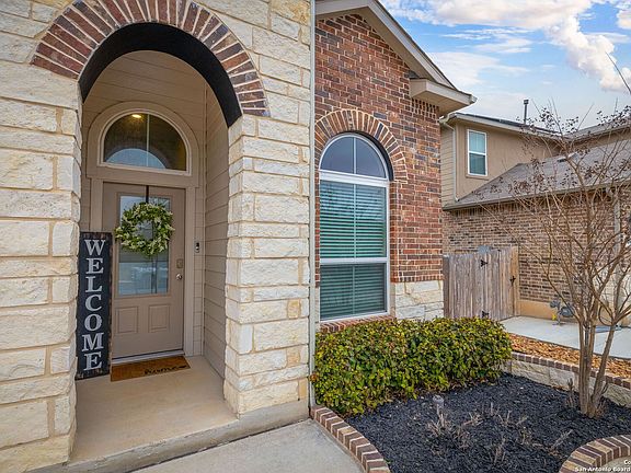 IMMACULATE: This two-story home features 4BR/2.5BA, encompassing 2,599 square feet of living space. Upon entering, you'll find an elongated entryway that opens to a private study area with french doors, and a charming powder bath. The entry hall then flows into a spacious living area with 18' ceilings, seamlessly connected to an open-concept kitchen and dining area. A covered patio off the dining area provides an ideal space for outdoor dining and large gatherings. The first floor also includes the primary bedroom, garden tub, walk-in shower, and a very generous walk-in closet. Moving to the second floor, you'll discover upgraded wrought iron railing as you walk up the stairs to include the balcony. There is an open game room area perfect for entertaining, along with a secondary bedroom featuring a walk-in closet. A private hallway leads to two additional secondary bedrooms, each with walk-in closets, and a Jack and Jill bathroom. The Caspian plan includes a smart home security system, allowing you to control lights, thermostat, and locks from your phone. Additional features of the home include an Alamo water filtration system (owned), ceiling fans in the living room and all bedrooms, stonework around all front yard garden beds, remote LED color-changing lighting in spare bedrooms, a Moen kitchen faucet with Power Boost, and backyard fence lighting with remote. It also includes a 2-car garage, a doorbell camera that can be viewed 24/7 on the app, and rain gutters all around the home. Valley Ranch offers a range of community amenities, including 10,000 square feet of resort-style facilities and bi-weekly activities organized by the Valley Ranch Lifestyle Director. Located within the Northside Independent School District, Kallison Elementary School is situated within the community. Valley Ranch is a fantastic place to live and is an easy commute to JBSA-Lackland, Sea World, amazing shopping, parks and all the things San Antonio has to offer. MUST SEE TO APPRECIATE!!