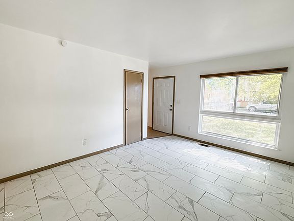 Welcome to this 3 bed 1 bath ranch on the east side of Indianapolis. Starting on the exterior you have a brand new roof, spacious back yard with fence, and a gravel driveway. Heading inside to the living room space with marble tile flooring. The kitchen dining room spaces features large open windows with blinds and tile flooring. The kitchen boast plenty of storage and a gas stove. Heading down the hall are the three bedrooms and full bathroom. The primary bedroom features dual closets. The bathroom is a jack and jill that also leads to the laundry room. Close to local shopping and dining. No HOA.