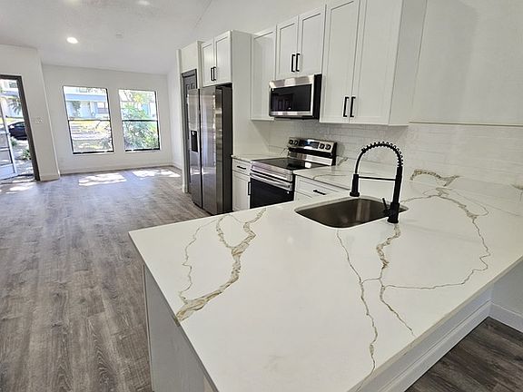 Discover this beautifully renovated, spacious 2-bedroom, 2-bathroom home located in the charming community of Gotha. The expansive family room features stunning laminate flooring that adds warmth and elegance to the living space. The open-concept kitchen is equipped with sleek stainless steel appliances and a cozy breakfast nook, perfect for casual dining. Abundant natural light fills the home, creating a bright and airy atmosphere throughout. Both bedrooms are generously sized, providing comfort and versatility. Enjoy outdoor relaxation on the screened-in patio, ideal for outdoor gatherings or quiet evenings. This move-in-ready residence combines modern updates with a welcoming ambiance.