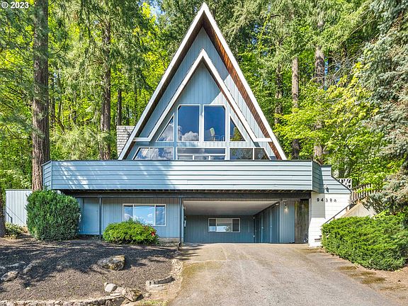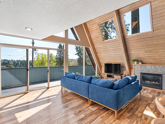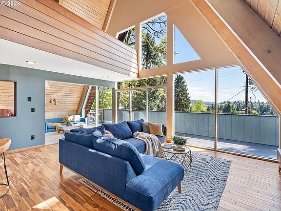 Architecturally stunning A-Frame that tickles the trees of Rocky Butte amplifying authenticity. Respectfully remodeled paying homage to the chalet. Upstanding updates w/period like finishes. Spectacular southern views w/peaks of Downton Portland from the expansive wall of windows and wrap around 1,000+ sqft deck. Beamed Ceilings, stunning skylights, walls of windows, wonderful wood paneling, handsome hardwoods. Sexy staircase and lovely loft. The layout allows for 2 separate living spaces w/3 bed/2 bath upstairs & 1 bed/1 bath w/ full kitchen in downstairs daylight basement. ADU received rents upwards of $2,300 this past year. Main home has rented for $4000-$4400/month. Built by local Architect William Wayman for himself.