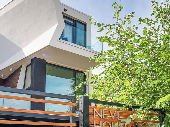 A vision of one of Downtown Boulder's most striking achievements in design and sustainability, Neve House redefines modern living. Crafted to Passive House standards and built for net-positive energy performance, this residence is both a sculptural work of architecture and a regenerative living environment. Walls of glass, soaring 20-foot ceilings and bold geometric windows immerse the interiors in natural light while framing mountain views as ever-changing works of art. A dramatic maple accent wall rises through the living room, complemented by custom millwork and refined finishes throughout. The second-level primary suite offers a sanctuary of its own with dual private balconies, a spa-like five-piece bath and a spacious walk-in closet. An additional upper level bedroom, expansive decks and thoughtful indoor-outdoor connections provide balance between retreat and gathering. A newly built, architect-designed detached art studio in the backyard offers increased flexibility for daytime or guest use, with a main level living area opening to a private patio and upper level loft with a 3/4 bathroom. The oversized 2-car garage has been fully customized with extensive storage racks for tools + gear, a built-in workbench with cabinetry, a home gym, wine fridge, storage closet, epoxy flooring and EV charging. This turnkey property offers its residents a true, modern oasis.