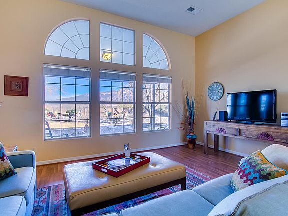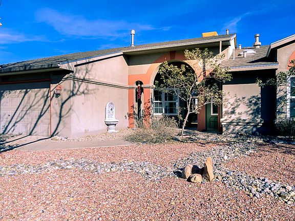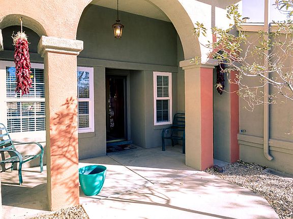 Be wowed by the stunning unobstructed mountain views from inside and out of this nature-lover's oasis. Walk five minutes to reach the Corrales Open Space/Bosque wooded trails along the Rio Grande. Enjoy time with friends and family around the private backyard fire pit or in the bright airy great room and dining room. Delight in the historic rural charm of Corrales Village since home is located off Corrales Rd, or drive only ten minutes for all the conveniences of the modern city of Rio Rancho. Truly a rare find, with an abundance of natural light throughout. The open kitchen with its Italian tiled countertops lends itself to effortless entertaining, as the dining room French doors open to the large xeriscaped backyard equipped with ample sitting areas and views of three mountain ranges