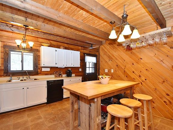 Have you been looking for privacy and land??? Come see this beautifully maintained 3 bedroom 1.5 bath Log Cabin on over 2 acres of land. Enjoy nature and your morning coffee or a summer lemonade on the farmers porch! There is a large eat in kitchen with an open flow to the dining room & sitting area. The sliding glass doors lead out to the large back deck overlooking the yard, perfect for bbqs! The front to back living room is large but cozy with wall to wall carpet and a hearth with chimney ready for a wood stove. There are 3 great bedrooms featuring wide plank wood flooring and a full bathroom on the 2nd floor. New septic system installed in 2014, new Anderson windows on first floor in 2017, new water filtration system, insulation added to crawl spaces & generator hook-up added.