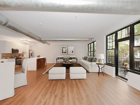 Open House Saturday, 11/1 from 1-3 PM! Discover chic urban loft living at the sought-after DNA Lofts! This newly renovated home impresses with brand-new flooring, fresh paint throughout (walls and ceilings), and new appliances — including a gas range, microwave, dishwasher, and disposal. Enjoy comfort year-round with new heating and A/C units and abundant natural light from expansive windows.The open-concept 1,112 sq. ft. layout offers modern flexibility — easily create a private bedroom while maintaining the airy loft feel with 11-foot ceilings and exposed ductwork. The spacious living and dining area flows into a sleek kitchen with stainless steel appliances.Additional highlights include central heat/AC, a private balcony overlooking the courtyard, a deeded parking space, and access to a rooftop deck with stunning city views. This professionally managed, elevator building also features a fitness center and intercom system. Don’t miss this stylish move-in-ready loft — a must-see!