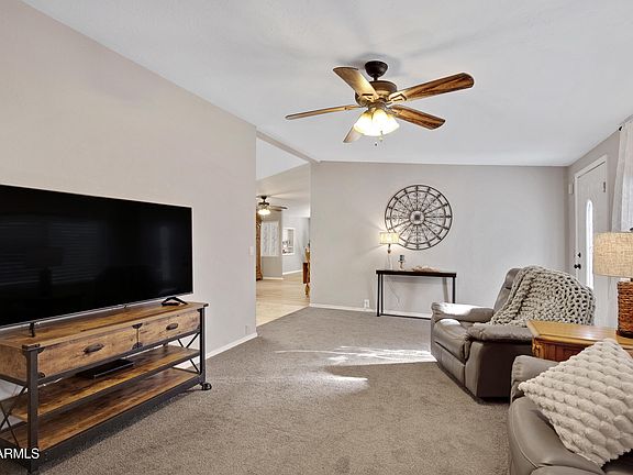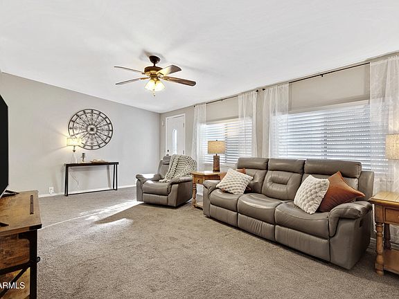 Discover this impeccably cared-for 3-bedroom, 2-bath mobile home on a spacious 20,000 sq ft lot in San Tan Valley! With close proximity to the new 24 Highway, commuting is a breeze. Inside, enjoy a beautifully remodeled kitchen, while outside, relax by the pebble tech pool or take advantage of RV gates and ample room for all your toys—RVs are welcome here! The property also features a new AC for year-round comfort and is located in a community with a remarkably low $100/year HOA fee. Not in a 55+ community, this home is perfect for families looking for space and freedom. An incredible value in San Tan Valley—don't miss your chance to own one of the most reasonably priced homes with a lot of this size!