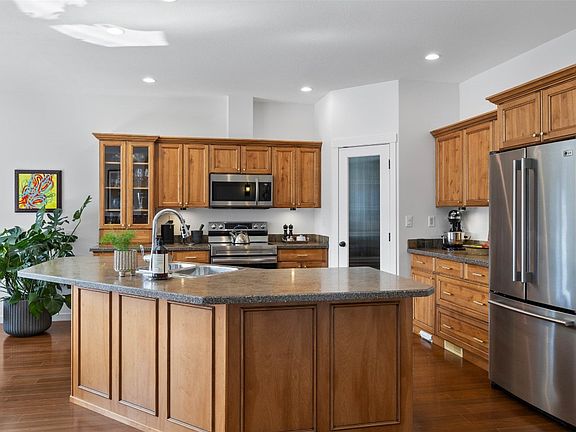 Panoramic viewNatural lightHuge islandCustom cabinetryWalk-in pantryGenerous walk-in closetWalkout basement