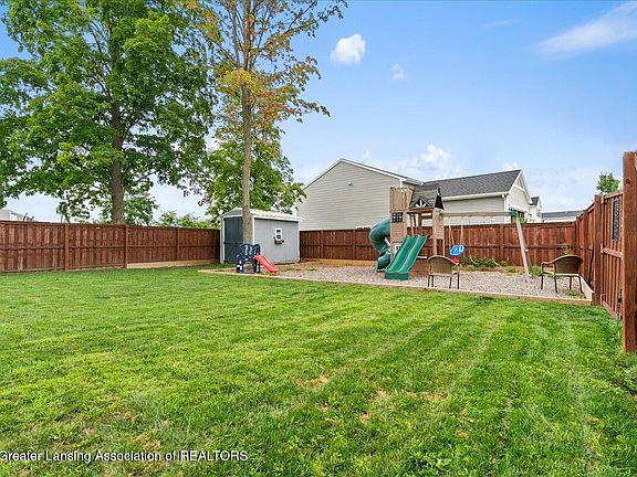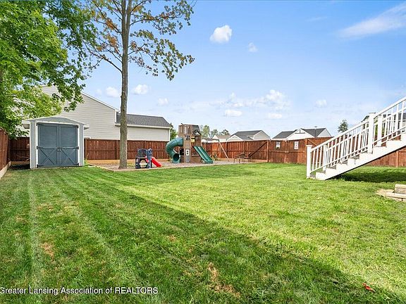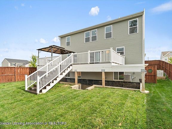 Priced below appraised value! Change in relocation brings this home to the market before sellers had a chance to move in. Sellers just spent over $15,000 to paint interior of home. It is beautiful, clean and move in ready! This home is located within the Grand Ledge School District and offers 5 bedrooms, 3.5 baths, a finished basement with wet bar & cabinetry, a fenced in backyard with play area, a whole house Generac generator, large deck, shed and so much more!