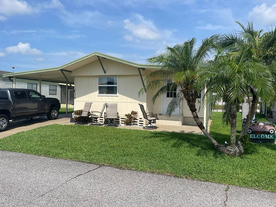 Anglers Cove / Lot #59 / 2 Bedroom/1.5 Bath / 728 Sq. Ft. / $47,900.00 This updated, drywalled home is located right on the canal with a dock! Priced to sell, this home comes furnished and has bonus square footage with the Florida Room that has A/C. It can be used year round as a "man cave", a sewing or craft room, or even as an extra bedroom or office. This home offers: New windows Drywalled throughout New vinyl tile flooring (that is waterproof) All the wood under the flooring is new Split Floor Plan Open concept kitchen Electric Fireplace And so much more!! Located on the canal that connects to Anglers Lake, this is in a dream location.