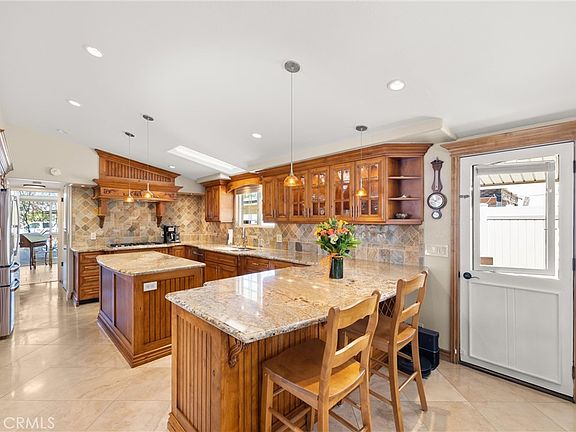 Welcome to this beautiful, remodeled home nestled in the tranquil neighborhood of Anaheim. This rare Cliff-May home has undergone custom upgrades worth approximately $180,000, enhancing its original charm while infusing it with modern touches. Enter and see the much-desired open floor plan with a formal living room showcasing the custom entertainment center with bookshelves. You will not miss the beautifully designed fireplace mantel. The interior showcases a recently painted pallette that creates a warm and inviting ambience throughout. The one-of-a-kind kitchen is a cook's dream with it's custom hood, sleek granite counters, custom cabinetry, soft-close drawers, under-cabinet microwave, under-counter convection oven, Bosch dishwasher, huge peninsula, and center island. These amenities, along with the skylight, make meal preparation not just easy but enjoyable too. The master bedroom boasts it's own entrance. A walk-in closet in the master bedroom is a dream come true for any fashion enthusiast. Both bathrooms have been recently renovated as well. Almost all new HVAC systems are sure to provide year-round comfort, ensuring efficient temperature control and peace of mind for the entire household. A highlight of this property is the unique entertainment-friendly backyard, where you can enjoy outdoor activities or sit in the California sun. Avocado and apple trees provide fresh fruits to enjoy throughout the seasons, and there's no need to water the landscape as it's all done through a drip system and sprinklers. A crack-resistant 85-foot-long gated driveway for your RV, or just use it to play sports with the family. This backyard is also the perfect private spot to watch Disney fireworks, creating magical evenings for you and your loved ones.