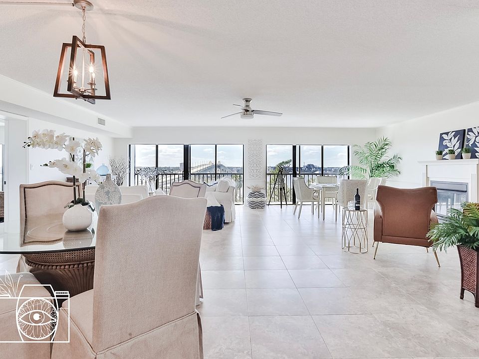 Enjoy dramatic sunset views that light up the Halifax River. This is an huge, sunny 3 BR/2BA beachside riverfront condo with over 2365 finished sf plus two private screened terraces with fantastic views. Large modern chef's kitchen with breakfast bar. Huge dining room and living room overlooking the Intracoastal. The LR/dining room is huge, fully tiled and has a fireplace. The master bedroom suite has an adjoining full master bathroom and large private dressing room. A separate adjoining live-in suite includes 2 bedrooms and a full bathroom.