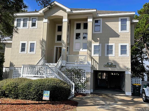 New Financing Offer from seller - see comments below. SOUNDFRONT DREAM HOME! You’ll see never-ending SOUND and SUNSET VIEWS from this beautifully designed and FULLY FURNISHED unique home in COROLLA. The present Owners only rent JUNE 1st. to SEPT. SEE QUOTES FROM PRESENT PROPERTY MANAGEMENT.> This Monteray Shores house was designed with an expansive wall of windows and a dynamic cathedral ceiling to maximize the sound views from every room in the house. Enjoy the PRIVATE POOL, or RELAX IN THE DECK HOT TUB. Perhaps reading on the comfortable SCREENED PORCH. The HOME IS IN PRISTINE CONDITION, meticulously maintained in as-new condition. Gift of the Sound has 5 bedrooms and 5 bathrooms, OPEN WATER AT THE REAR OF THE PROPERTY with a BULKHEAD, and a beautifully maintained yard. Other features include Polywood® Outdoor furniture, LARGE IN-GROUND POOL, a 2-person swing for viewing the magnificent sunsets, and a PRIVATE DOCK. This property comes fully furnished and features ceramic tile, freshly refinished hardwood floors, granite countertops and bright bathrooms to make this a comfortable and inviting home. The main living area is on the mid-level, with one Master Bedroom featuring a large user-friendly bathroom - perfect for those who wish to keep stairs to a minimum. Also on this main floor is a QUEEN Bedroom with an adjacent full bath. Upstairs is a Huge Master Bedroom with a PRIVATE SOUND-VIEW DECK. Also a QUEEN Bedroom with a PRIVATE SOUND-VIEW DECK, and a Twin Bedroom. Just down the street is a clubhouse with a large pool, fitness center, basketball, pickleball, tennis courts, and a playground for the kids as well as planned children’s activities. There is a private boat dock, as well as a community boat ramp, kayak and bike rentals, and other community activities. Comments - seller will contribute to buy down of mortgage. New Financing Offer from seller.