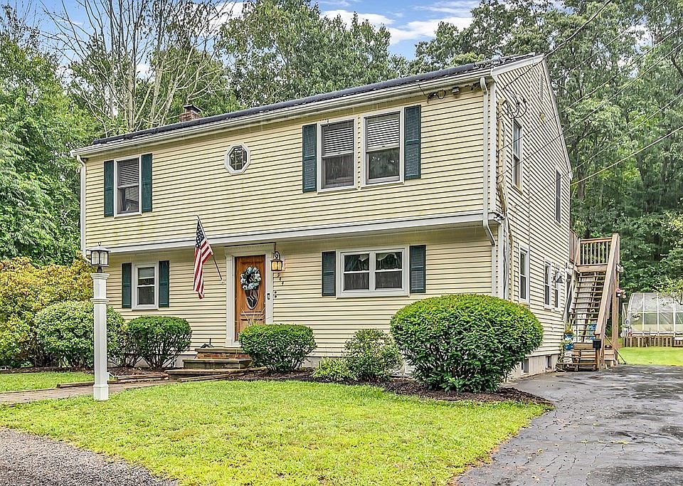 Looking for multi generational living- you found it! This awesome colonial with an in-law is situated on almost an acre and has it all. First floor original home has an eat in kitchen, generous sized living room, two bedrooms and full bath, plus screen porch. The second floor addition provides an another two good sized bedrooms, bright vaulted ceiling eat in kitchen, large living room and full bath with laundry. Plus a large balcony with stairs to the back yard. Basement is mostly finished with three rooms, laundry and storage. There's a wonderful above ground pool, two storage sheds, a greenhouse full of tomato plants and walking trails through the woods. Roof is newer with leased solar panels from SunRun minimizing your electric costs. Come see for yourself at the commuter open house Thurs Aug 10th 5:30- 7p
