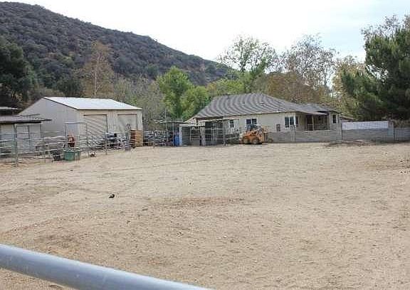 Diamond in the rough... 1 1/2+ acre Ranchette, features 5 stall MD raised center aisle Breezeway barn with tack room, attached corrals, and covered patio, arena with lights and sprinklers, approx. 100x70 (walked off) also ample trailer parking, plus an over sized workshop approx. 30x30 with accessory heavy duty power. Legal for 17 or 18 horses... As well as a large 2 car garage. Home features a small 2 bedroom 1 bath house needs TLC but features many large windows with views of the barn and mountains also offers a lovely attached covered patio and Enjoy your own private hillside where the deer visit daily. There is plenty of room for your animals, toys, kids or a new house, anything you can imagine!