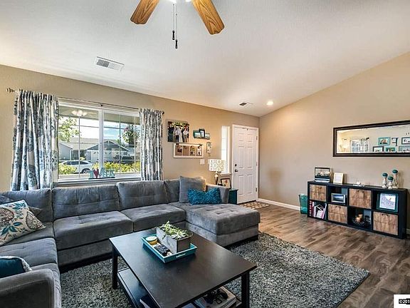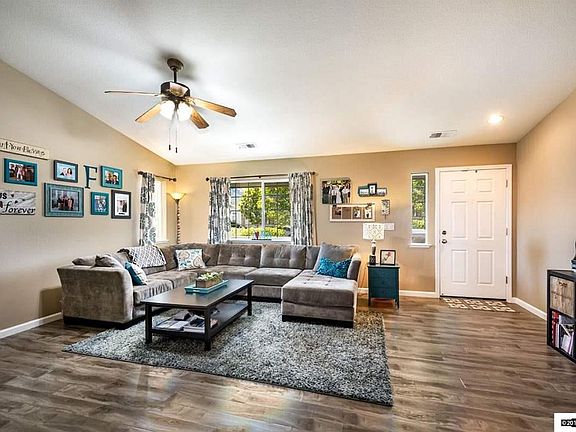 Turn key single level home located in an established and up and coming area of Sky Vista! Interior has open concept floor plan with low maintenance, gorgeous laminate flooring, awesome covered back patio and mature landscaping in front and back yards. This is a large lot for the community and really only has 1 neighbor. Just a Short Drive to Lake Tahoe, Virginia City & the Reno/Tahoe Airport. Miles of Bike & Walking Trails. BTV all.