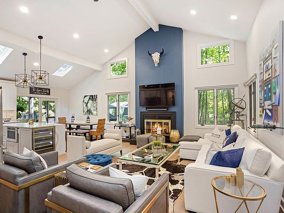 Located in highly desirable Union Pier, celebrated for its quaint downtown, pristine beaches, and easy access to Chicago, this meticulously renovated home offers a blend of luxury and comfort. Designed with entertaining and comfort in mind, the spacious upper level loft and two main level bedrooms provide comfortable sleeping accommodations for 8. This special home is being sold primarily turn-key, with only a few furniture pieces and artwork excluded. Set on 2 private acres of lushly landscaped grounds, this elegant pool house escape features a brand-new kitchen with high-end appliances, stunning new lighting, beautifully remodeled bathrooms, and a mix of wood flooring and plush carpeting. Modern upgrades also include a smart thermostat, new furnace, and an advanced sump pump system The outdoor amenities are truly impressive, highlighted by a spacious gated saltwater pool with a new heater, sand filter, and electric cover. Additional unique features include an 8-person hot tub, a full-yard sprinkler and drip irrigation system for vibrant flowerbeds, and a fitness center within the pool house. The pool house also offers a storage area, a half bath with two sinks, and a full refrigerator for convenience. Offering the perfect combination of seclusion and proximity to all that Harbor Country and Wine Country have to offer, this home is ideal for year-round living or as a luxurious vacation rental.