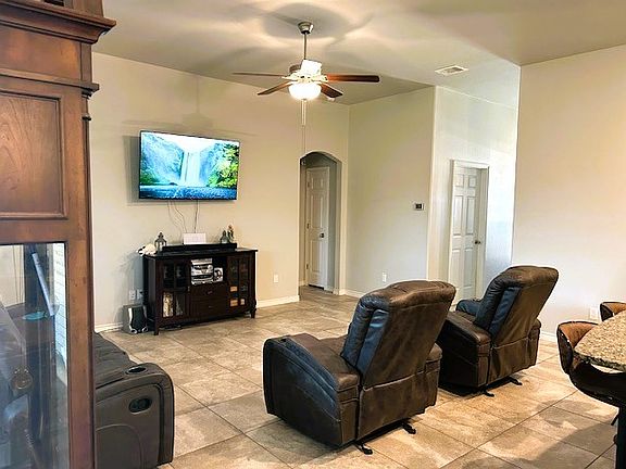 Step into comfort and space with this inviting home featuring a large open living room that seamlessly connects to the kitchen and dining area. The kitchen has stainless appliances, tiled back splash and granite counter tops including the breakfast bar. The home is adorn with beautiful tile floors in all area's except the bedrooms which are carpeted. The spacious primary suite is large and is split from the additional 2 bedrooms. There is a walk-in shower, and a generous walk-in closet. The fully fenced backyard is great for privacy, outdoor lounging or grilling and has an (extended) covered patio. Nestled in a great community, residents enjoy nearby parks, local shopping, and easy access to most of your heart's desires. Come take a look with your favorite Realtor and be in in time to celebrate the holidays at your new home!