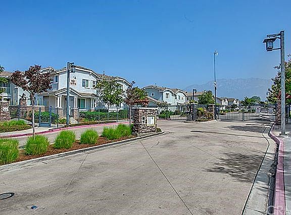 IMMACULATE two story condo in the Main Street GATED Community in desirable Rancho Cucamonga! Great corner end unit adjacent to the community playground with one of the largest rear yards in the complex! Tons of upgrades throughout include fresh paint, crown moulding, upgraded baseboards, oversized tile flooring, and plantation shutters; making this home turnkey and ready for move in! Spacious open floorplan with kitchen open to dining area and family room; perfect for entertaining. Newer laminate flooring on stairs and second floor. Multipurpose loft area at top of stairs can be easily converted to 3rd bedroom. Master bedroom with en suite bath complete with separate soaking tub and shower. Tons of community amenities including pool, playgrounds, and clubhouse! Ideal location off Foothill Blvd, directly across and within walking distance to shops, restaurants, public transit and easy freeway access! MUST SEE!!