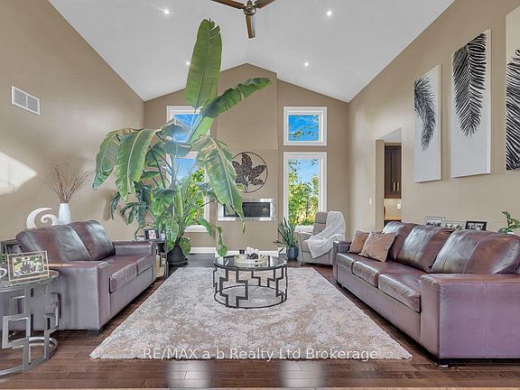Welcome to this stunning custom-built home that seamlessly blends luxury, comfort, and functionality. With 6 spacious bedrooms, 3 full bathrooms, and over 3300 sqft of beautifully finished living space, this home is designed to accommodate families of all sizes. Step inside and be captivated by the 15-foot cathedral ceilings, a striking gas fireplace, and warm engineered hardwood floors that create a grand and welcoming atmosphere. The heart of the home is the chef-inspired kitchen, complete with granite countertops, custom maple cabinetry, stainless steel appliances, and a walk-in pantry for ultimate convenience. The main floor primary suite features a generous walk-in closet and a luxurious 5-piece ensuite with a jetted soaker tub and oversized tiled shower. The fully finished walk-out basement offers additional living space with 3 more bedrooms, a spacious family room, ample storage, and a spa-like bathroom featuring a large tiled steam room with rainfall and side shower perfect for relaxing after a long day. Outside, the professionally landscaped yard and multiple patio areas provide ideal spaces for entertaining or simply enjoying the peaceful surroundings. Tucked away at the end of a quiet, family-friendly cul-de-sac, this home offers privacy, luxury, and a true sense of home. Schedule your private tour today!