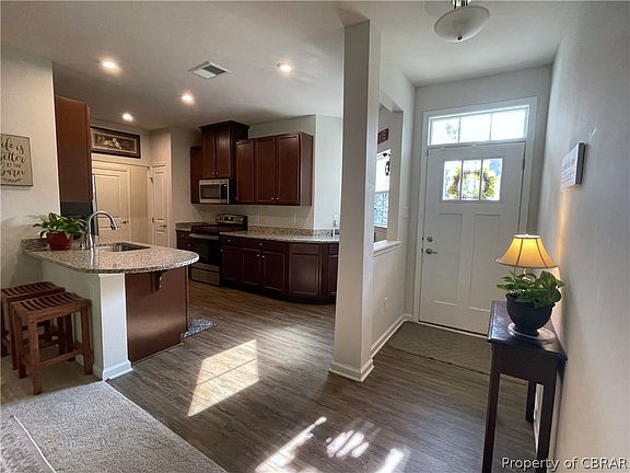 Welcome home to a like-new Calvert model townhome in the highly coveted Stonehouse neighborhood! Close to I-64 with all the bells and whistles you could want: granite counters in kitchen & bathrooms, glass top stove/matching GE energy efficient appliances, NEW LVP flooring, like-new carpet, and security system! The primary bedroom is on the first floor with en suite bathroom! 2 car garage AND high wood privacy fence w/trex decking & shed in the tranquil backyard looks out onto a wooded a RPA that will never be built on. As one of the homes to the back of the street, you have move-in ready modern serenity to look forward to! Stonehouse has a community pool, tennis courts, play areas, exercise room, walking trails, clubhouse and golf course!