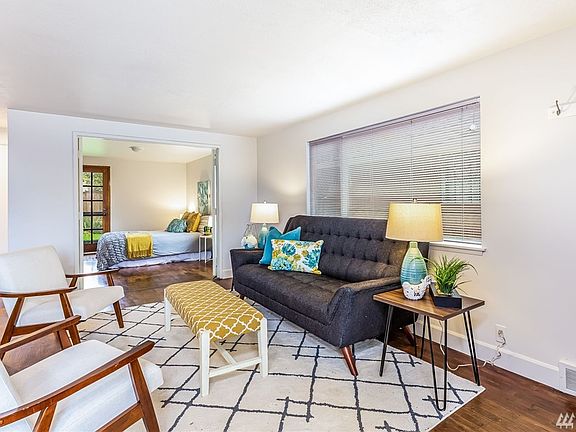 Fabulous West Seattle location, moments from Westwood Village shopping & amenities. Approx. 1,470SF, with three bedrooms, one full bath, nestled on a spacious 7,000+ SF lot. Features include fresh paint throughout, hardwoods, new wall-to-wall carpet, laminate flooring & bonus den/office. Serene backyard farm-like setting with mature fruit trees, planter beds & room for more. Easy access to public transportation and freeways to downtown. One car attached garage + additional off street parking.