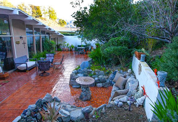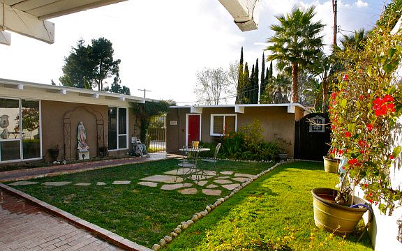 Nestled against your own private hillside, this Mid-Century Modern home can be either an entertainer's delight or a solitude seeker's refuge. The gated entry guides you into a place of serenity. The front courtyard has a Mediterranean feel with its white walls, brilliant bougainvillea and tranquil water feature. The sun-drenched interior offers an open floor plan, high wood beam ceilings and walls of windows to bring the sensation of being outside into the living and dining rooms. The interior is also complemented with warm and rich color walls. Alluring fireplace. Three restful bedrooms. Spacious kitchen and dining area. French doors open onto the back patio accessorized by a custom built stone dining alcove, hand painted mosaic artwork, lush landscape and plenty of mature trees. Privacy is key. Desirable Crystal View location, just minutes to Downtown LA, Bob Hope Airport, Burbank Studio's, Glendale, Pasadena and Stunning Verdugo Hills are in hiking distance. Beautifully Balanced by the Art of Fung Shui. Offered at just $559,000.00