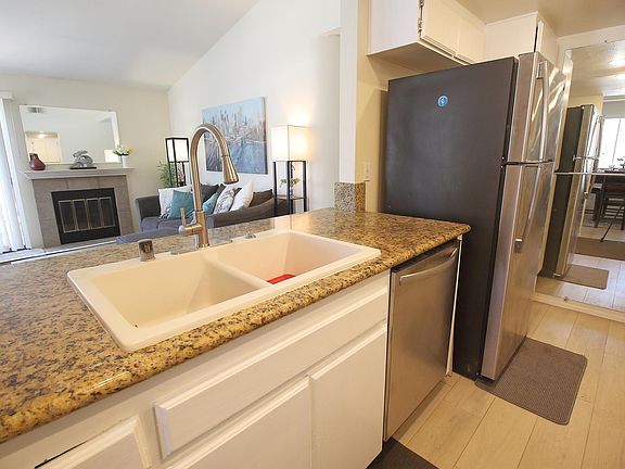 Spacious furnished and airy upgraded move in ready 3 bedroom, 2 bath , 2 assigned parking spaces and located on the 2nd floor of a 2 story building. Kitchen includes all stainless steel appliances, washer dryer, central AC, closets have organizers, ceiling fans and storage on balcony. Flooring has carpet throughout and ceramic tile in kitchen and bathrooms, fireplace in living room and with 2 balconies (off living room and master bedroom). Complex amenities include 4 pools, jaccuzi, and clubhouse. Easy walk to grocery, restaurants, library, post office, YMCA and easy access to freeways. No smoking, small pet allowed with restrictions. TWO assigned parking spaces. Located in the award wining Poway Unified School District. Tenants pays own SDGE, cable TV and wifi.