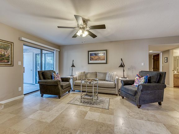 Like new spacious home, nicely decorated, Travertine stone tile flooring through out, walk-in tiled shower in master BA, granite counter tops, all new furnishings. Ground level with wrap around deck, community offers, pools, spas, tennis courts, BBQ grill area, walking paths. Exceptional location easy access around the valley. Come and enjoy.
